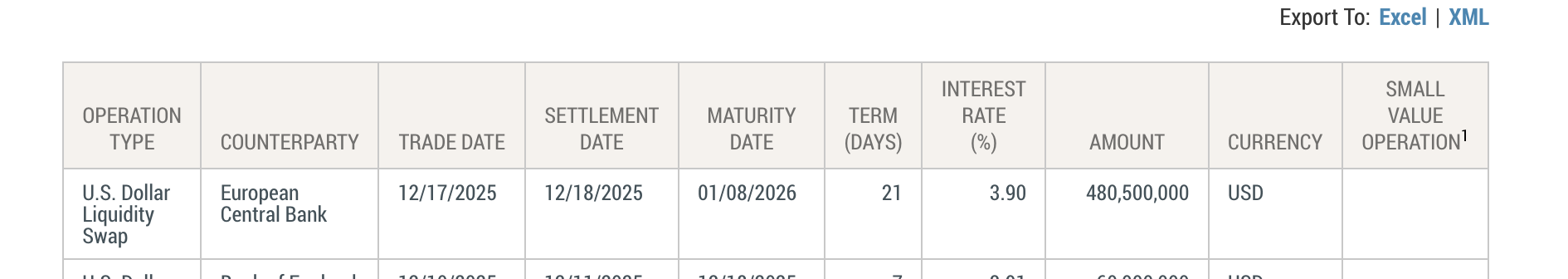 Je vous rappelle que la BNP et la Société Générale sont des intermédiaire de la Fed, le système financier européen est hyper-dollarisé et la Fed a aussi du envoyer en urgence des dollars à la BCE par les opérations de swap. Il s’agit d’un demi-milliard le 17 décembre. Ce n’est pas un montant gigantesque mais inhabituel, c’est le signe d’un stress.